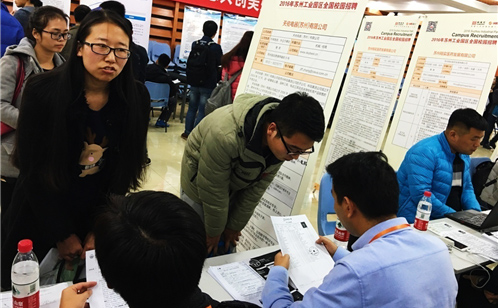 当天下午,哈工大活动中心现场聚集了1000多名学生,招聘现场场面火爆。苏州工业园区招聘企业共收到学生简历544份,硕士学历及本科学历各占50%。经过一个下午的奋战,共有154名学生与企业达成招聘意向,进入了晚间的面试环节。