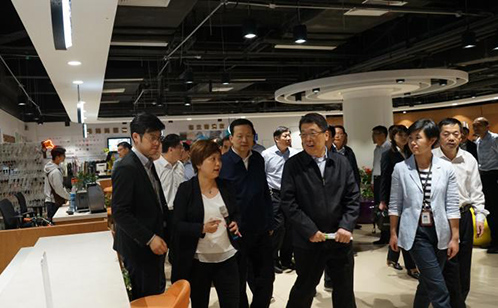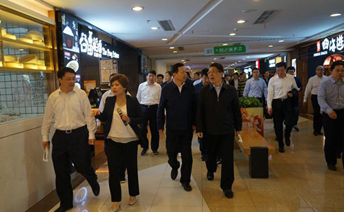 考察中,代表团一行来到了景城邻里中心,实地考察了邻里中心运作情况及了解邻里中心品牌发展的特色,新建元集团副总裁、邻里中心公司董事长、总经理谢易涵陪同参观并作了详细介绍。代表团一行对早餐一条街和集中式便民服务中心留下了深刻印象。
