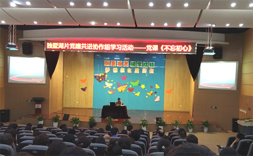 2018年6月6日,月亮湾“红月”党建联盟组织开展首次共建活动——《不忘初心》专题党课,邀请苏州科技大学教育与公共管理学院副教授肖建博士授课,邻里中心公司党委作为党建联盟成员单位,积极派党员参加学习。