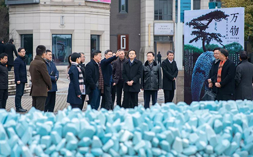 王飏副市长一行首先参观了中国雕塑院副院长郅敏的“万物”和中国书法家协会会员赵军的“吾行吾书”等展览,对街区呈现的浓厚文化艺术氛围表示赞赏。随后,王飏一行又参观了金鸡湖书院、蔡云娣三雕博物馆、姚建萍刺绣艺术馆、中国青年雕塑家交流中心、粉画博物馆、明美术馆、老子广场雕塑群等文化场馆、设施,与各文化单位负责人进行了探讨交流,对目前街区文化组成与内容丰富性表示认可。
