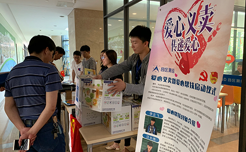 6月14日中午,由园区测绘党总支主办,园区测绘团总支承办的爱心义卖活动暨爱心帮扶启动仪式在测绘大楼一楼举行。