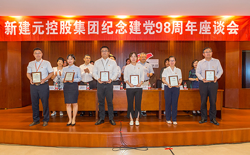 为纪念中国共产党成立98周年,继续深入学习贯彻习近平新时代中国特色社会主义思想和党的十九大精神,激励广大党员投身实现新建元“产城融合集成服务商”战略定位的新征程,7月1日下午,星空体育全站召开纪念建党98周年座谈会。会议由星空体育全站党委副书记亢越主持,集团管理层,下属一、二级公司班子成员,总部全体党员及党委、团委受表彰个人和组织代表近120人参加会议。