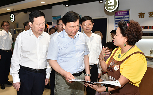 “邻里中心+民众联络所”组团式服务模式是园区在特色社区建设中的创新探索。下午两点半,景城民众联络所内,来往居民络绎不绝。“您是来办什么事的?”“这里的居民服务还算方便吗?”娄勤俭边走边看,实地了解民众俱乐部、乐龄馆、图书馆等便民设施运行情况,并与前来办事的居民亲切交流,询问其对社区服务的意见和建议。与景城民众联络所一墙之隔的景城邻里中心是园区人日常生活的一站式“加油站”,也是园区三级服务体系的基石,除生鲜菜场、早餐一条街之外,还整合了修理铺、缝纫铺、干洗店、家政中心等诸多便民基础服务项目,为周边5个社区居民提供服务。娄勤俭充分肯定了园区以人民为中心的社区建设理念,强调一定要创新思路、敢闯敢试,真正地为民办实事、办好事。