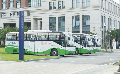 三辆纯电动穿梭大巴,每天上午8:00-8:45,下午17:35-18:40,10分钟一趟,穿梭在产业园至1号线钟南街站与2号线桑田岛站,需要带身份证复印件和公司证明材料,至园区的一站式服务站办理乘车资格。据悉,园区人数逐渐增多,3辆车的班次已经不太支撑,目前正在与巴士公司去谈合作。