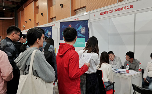 招聘会现场,园区优质企业和高层次青年人才通过面对面交流,营造出供需无缝对接的良好局面。金龙联合汽车工业(苏州)有限公司是园区博士后工作站的设站企业,此次公司专程到北京科技大学开展招聘。招聘会刚开始,公司摊位前就有几位博士、硕士应届毕业生前来咨询、投放简历,招聘情况良好。