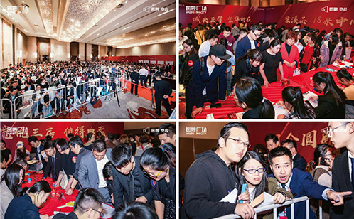 秉持着国企公开公平公正原则,也为了让客户能够同等机会选到自己心中的房源,当天圆融采取了乒乓球摇号选房的形式,开盘现场热闹中有序,主持人宣布开盘正式开始后,在置业顾问指引下,客户按摇号顺序依次进入选房区,很多客户事先准备充分,备好了心仪房源,一进入选房区,直奔自己心头好房,选房区顿时人声鼎沸,火热非常,选房盛况持续刷新,秋日正凉,但难挡圆融广场热销的步伐。