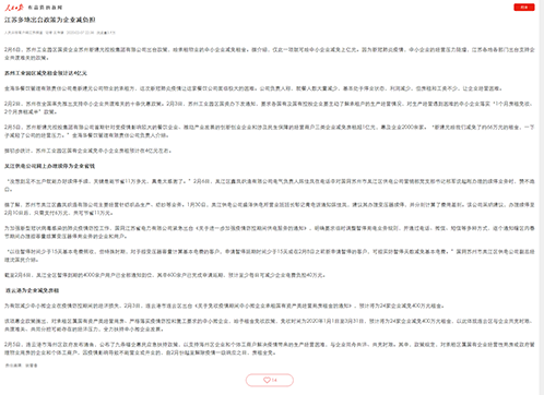 2月2日,苏州在全国率先推出支持中小企业共渡难关的十条优惠政策。2月3日,苏州工业园区国资办下发通知,要求各国有及国有控股企业要主动了解承租户的生产经营情况,对生产经营遇到困难的中小企业落实“1个月房租免收、2个月房租减半”政策。