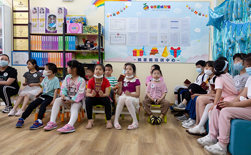 了解完老街的历史,孩子们来到“七彩星球”,跟着老师学唱英文歌。大家踩着音乐的节奏,一字一句,认真学习老师的发音,在唱唱跳跳中,学到了新知识。随后孩子们来到“和茶馆”,跟着老师学习打击空灵鼓。悠扬的乐曲声让孩子们感受到了鼓文化音乐的魅力,也体会了中西音乐文化的差异。