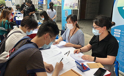 6月29日,苏州全市人才服务机构走进苏州大学,现场为苏州大学2020届毕业生开展人才政策推介、落户手续办理等服务。来自苏州工业园区的人才服务机构积极参加活动,为青年人才提供留在园区、扎根园区提供贴心服务。
