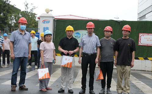新建元建屋党委一行先后赴东太湖、康帝庄园五期、建屋广场D座、常熟、绍兴等工地,慰问了冒着酷暑奋战在一线的施工人员。在施工现场,慰问组详细了解了项目建设、安全生产、防暑降温等情况,并将公司精心准备的防暑降温慰问品送到项目管理人员及工人手上,感谢他们为工程建设付出的辛勤劳动。