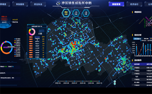 沙溪镇集成指挥中心二期引入了时空大数据技术,将沙溪镇公共信息服务平台升级到沙溪镇时空大数据平台2.0版本,实现了城镇信息资源的互联共享、城镇发展状况的可视化管理;并通过八大维度动态专题指标,全面呈现沙溪镇运行体征和总体态势,实时辅助研判与决策。