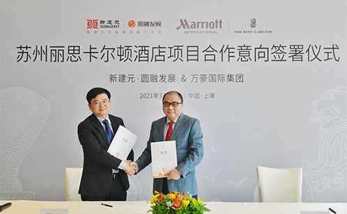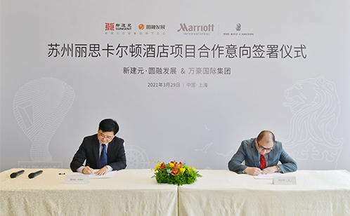 3月29日,星空体育全站旗下圆融发展公司(新建元圆融)与万豪国际集团在上海正式签署合作意向书。双方达成友好合作意向,确认苏州工业园区湖东核心板块将正式迎来万豪国际集团旗下品牌——丽思卡尔顿酒店,为金鸡湖湖东商圈的明日璀璨继续加码。