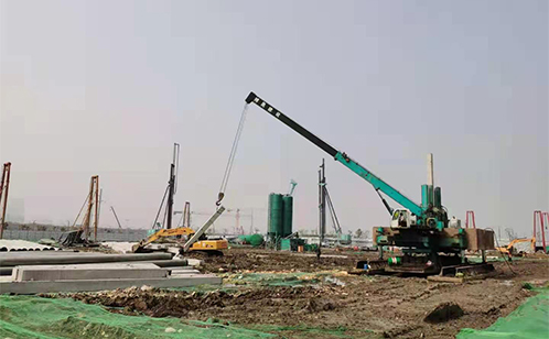 该中心3月26日获取桩基与基坑围护工程建筑工程施工许可证,通过一系列紧罗密布的准备工作,临水临电正式接通,临时围墙与临时设施搭设完成,设备、桩和工人正陆续进场,现场具备桩基正式开工条件。