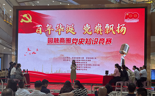 6月25日下午,由南通市崇川区学田街道党工委、学田街道工会主办,星空体育全站旗下圆融南通公司党支部承办的“百年华诞 党旗飘扬” 中国共产党成立 100 周年党史知识竞赛活动在南通圆融广场项目举行。
