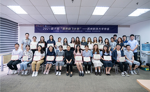 7月8日,“2021圆才班雏鹰助飞计划——苏州科技大学专场”在星虹国际大厦迎来首个开班日,22名苏科大人力资源专业大三学生作为首批学员参加。圆才企业管理培训公司负责人向全体学员介绍了苏州工业园区规划发展史,拉开了全天活动的序幕。随后,学员听取了《自我角色认知》及《沟通与面试技巧》两门课程,讲师从专业角度出发,帮助学员们基于自身实际做好职业规划,提升面试技巧。