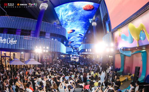 天幕上各种潮流元素流光溢彩,天幕下的市集同样热闹非凡。今年中秋长假期间,天幕市集之秋日好市如期而至举办。