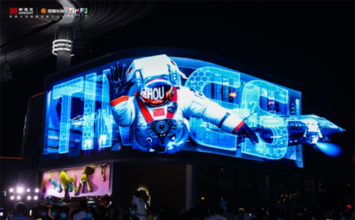另外,位于右岸街、圆融时代广场西街入口处的裸眼3D屏,构建了姑苏繁华图好运锦鲤、可爱卡通IP角色、科幻飞船、宇航员等立体出屏形象,为游客带来全方位视觉冲击。