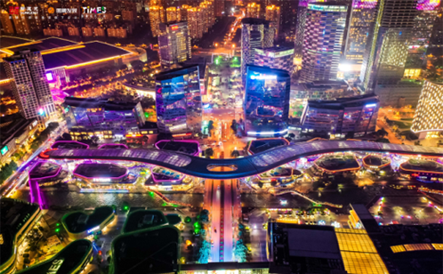 圆融天幕是圆融时代广场独有也是最为显著的构筑物之一。该LED天幕全长约500米,是当时世界长度最长、面积最大的独特视觉构筑物,至今仍保持了其惟一性和独特性,成为整个圆融时代广场的标志,也是园区现代商业记忆之一。
