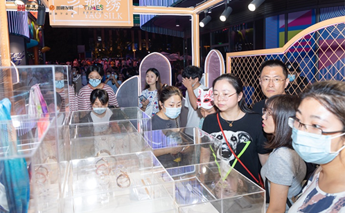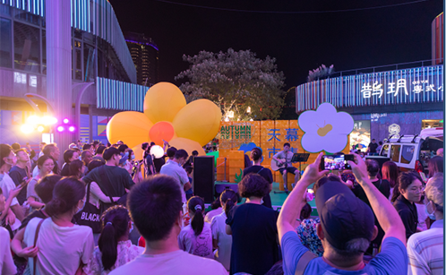 10月1日至10月7日期间,天幕市集继续以轻艺术快闪市集为内核,涵盖非遗、文创、美食、鲜花、潮牌等多个品类,共计100+摊位,以配合大型打卡互动装置及丰富的演艺活动,致力打造轻松、时尚、艺术的氛围营造,一键唤醒秋日美好夜晚。