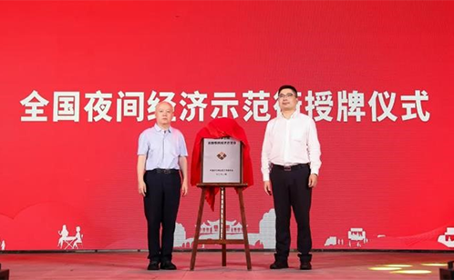 会上,2021 年中国商街委发布《关于继续开展全国夜间经济示范街分类指导工作的通知》,并授予苏州李公堤、苏州观前街、合肥罍街、连云港陇海步行街、西安老城根五个街区“全国夜间经济示范街”荣誉。各商业街代表纷纷登台进行经验分享和交流。