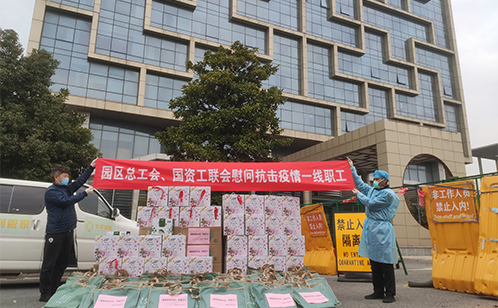 12月15日下午,苏州工业园区总工会、国资工联会慰问新建元产业旗下苏州汇英人才酒店疫情防控的一线职工。