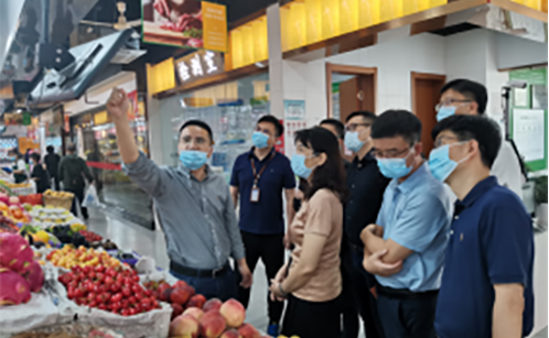 5月27日上午,佛山市市场监督局一行参观调研星空体育全站旗下邻里生鲜湖东菜场。