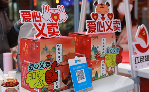 在圆融时代广场天幕下,“金鸡潮涌园区YE 海棠盛放悦商圈”党建市集热闹举行。星空体育全站旗下城市发展公司(新建元城市)积极参与爱心义卖。1月28日,由新建元城市义卖摊位推出的一款来自贵州省贵安新区的风味辣椒酱得到大家的关注,在热闹喜庆的市集中独具特色。