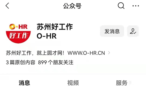 在招聘方面,新建元圆才的两大微信公众号【苏州好工作O-HR】及【苏州工业园区人才市场】定期为重点企业发布招聘信息,求职者可直接通过公众号在线投递简历,方便又快捷。