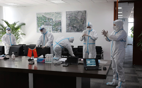 参演人员在公司疫情防控领导小组的统一指挥下,按照职责分工,第一时间启动应急预案,迅速按照预案流程进行妥善处置,以规范的的实战操作,圆满完成各项演练任务。