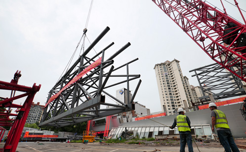 星海游泳馆完成巨型桁架吊装