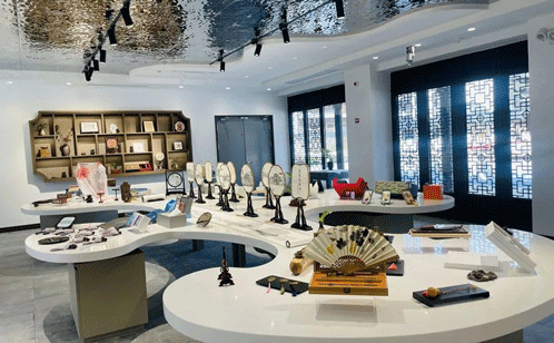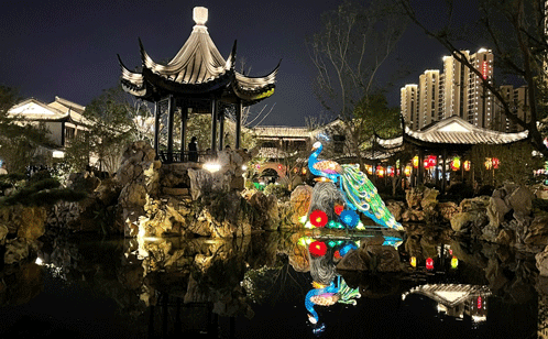 它是一处商业街区,汇聚了来自苏州的书香府邸旗舰店、宿迁本地特色店“金辉盛筵”、主打生猛海鲜的“渔舟村”、美味地道的苏帮菜馆“小园楼”等特色商户;它是一处园林景区,有“皱瘦漏透”的太湖石翼云峰、寓意长寿的涵碧轩山花、仿若仙境的蓬莱庭院以及粉墙黛瓦、飞檐翘角、垒石堆山、小桥流水等;它是一处文化社区,有老字号中医馆雷允上、凝结苏宿情谊的苏宿工业园区城市展览馆、展示“百匠赋新”的苏工苏作馆,汇集了苏州最具代表性的灯彩、核雕、宋锦、明式家具、船点、苏绣等手工艺作品。
