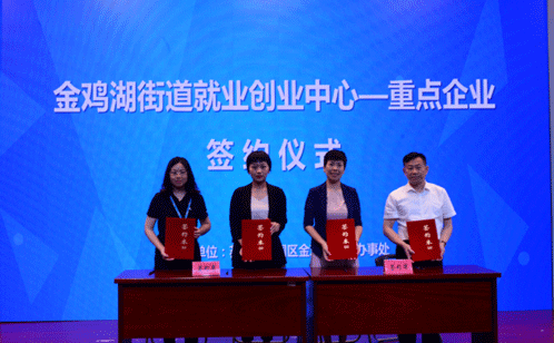 在揭牌仪式中,新建元圆才作为园区重点企业与金鸡湖街道就业创业中心签署战略合作协议。公司将以园区企业需求和居民就业为导向,与金鸡湖街道创业就业中心建立长期合作关系,以自身专业优势为企业和社区居民就业搭建桥梁,全力保障企业用工和居民就业。