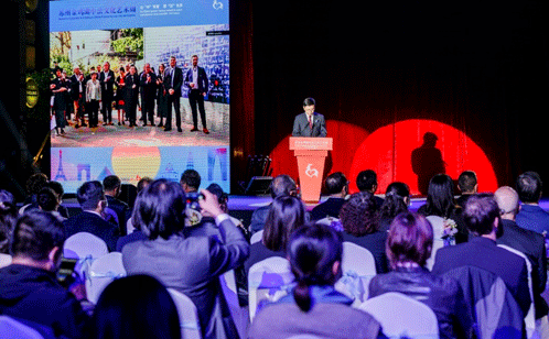 10月28日,伴随着中法爱墙在李公堤爱心广场揭幕,2022苏州金鸡湖中法文化艺术周系列活动正式启动。市委常委、宣传部部长金洁,园区党工委副书记、管委会主任林小明,市文化广电和旅游局局长韩卫兵,市人民政府外事办公室主任魏书杰,园区党工委委员、管委会副主任、宣传和统战部部长朱江出席活动。巴黎旅游会展局、十八区政府、中国驻法使馆、法国爱墙创作艺术家、法国蒙马特商会在法国蒙马特爱墙前同步视频连线,共同开启中法文化艺术周开幕式。