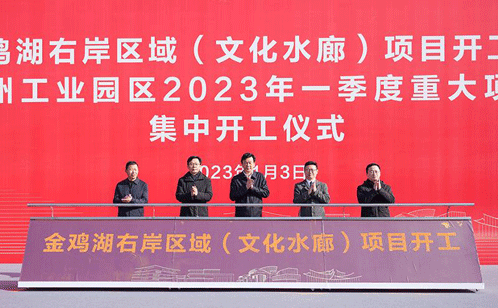 金鸡湖右岸区域(文化水廊)项目开工暨园区2023年一季度重大项目集中开工
