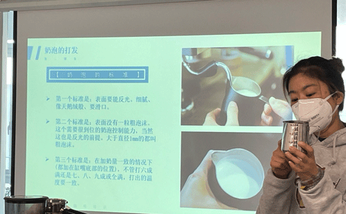 活动现场气氛热烈,学员们经过反复练习,在一次次试错过程中不断提高熟练度,最后都亲自体验了一次完整的拉花过程,拉出了令自己满意的“大白心”。活动结束后学员们纷纷表示:“平时每天都要喝杯咖啡,这次培训把做咖啡也了解了不少,能给自己增加一项技能真的很不错。”