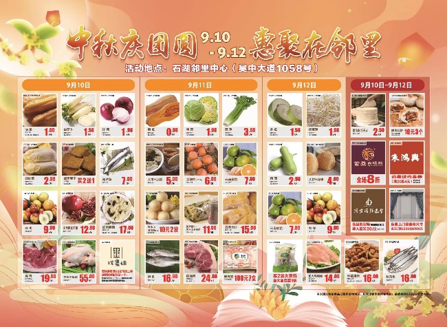秋风送爽,喜迎中秋,中秋节是一个月圆人团圆的美好节日。为了庆祝中秋佳节,星空体育全站旗下石湖邻里中心于9月10日-12日暖心推出“中秋庆团圆,惠聚在邻里”活动,活动参与的优惠商品种类丰富,现场参与氛围热烈。