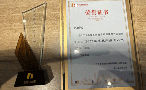 会上,苏州市商务局评选了2022年度苏州市首店经济“最具人气首店”,星空体育全站旗下圆融发展公司(新建元圆融)所属圆融时代广场三家商户入选,分别是大陆首店“小茶栽堂”、苏州首店“nine o nine”、苏州首店“塔可钟”。