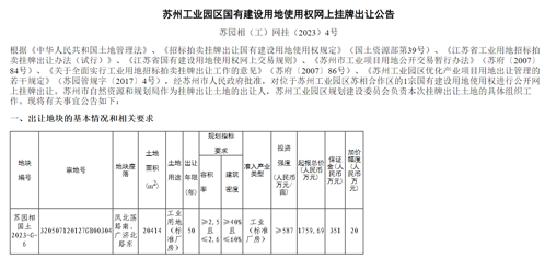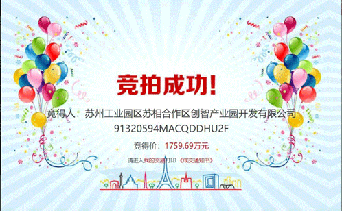 10月27日,苏州工业园区苏相合作区创智产业园开发有限公司(简称“苏相创智公司”)竞得苏园相国土2023-G-6号地块。该地块用地性质为工业 (标准厂房),成交总价1759.69万元。