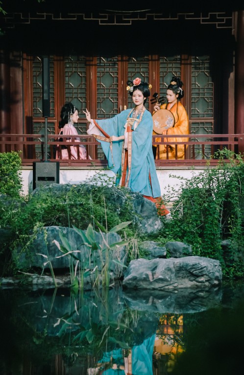 身穿传统服饰的青年艺术家在玉鉴池畔浅奏低唱,昆腔、古筝、笛箫声婉转入耳,非遗滚灯群舞活色生香,生动演绎一出《碧云秋兴》,拉开了本场斜塘雅集的序幕。昆曲《琵琶记·赏秋》《长生殿·小宴》、古琴《洞庭秋思》以秋入情,令在场嘉宾如痴如醉;评弹 《赏中秋》、舞蹈《嫦娥奔月》又把嘉宾引入但愿人长久,千里共婵娟的中式浪漫。大益茶、雲根白茶、睦和等斜塘商户争相“斗”茶,再现《文会图》高妙雅趣,通过商旅文融合发展的创新路径,推动文艺资源聚集、品牌活动打造,实现了文旅与商业的创意结合。从战国袍到旗袍,华夏衣冠年代大秀尽显东方美学风韵。风雅之余,中国名镇志《斜塘志》主编顾少华围绕斜塘地名文化作了生动讲述,带大家走近斜塘700余年历史发展的脉络。