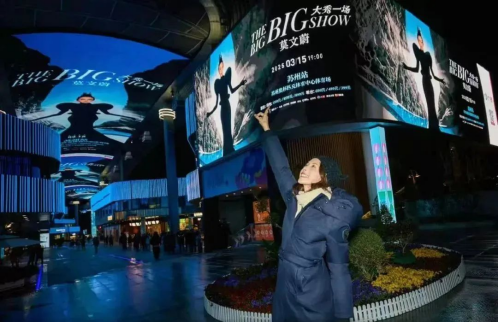 3月13日,在个人演唱会举办前夕,知名歌手莫文蔚来到新建元旗下圆融时代广场,打卡圆融天幕巨幅演唱会海报。圆融天幕是亚洲长度最长、显示面积最大的天幕建筑,近年来,新建元圆融发展持续优化圆融天幕内容展现,并推出天幕市集等系列活动,全力打造园区商文旅融合发展的优质展示平台。