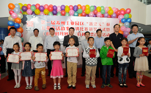 此次结合邮票的发行,联合苏州星空体育全站有限公司举办了儿童童话演讲比赛,用少年儿童描述的美丽梦想为繁荣富强中国梦增辉添彩。首发活动中,同步举行了“第一届苏州工业园区‘新建元’杯”儿童童话故事演讲比赛颁奖仪式,来自工业园区30所幼儿园和22所小学的52名学生参加决赛角逐。